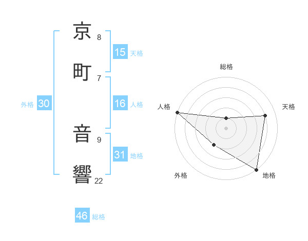 京町 音響さんの天格は15画の4点!