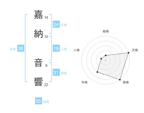 嘉納 音響さんを姓名の画数から五運を鑑定