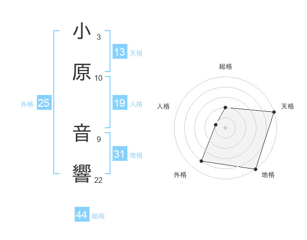 小原 音響さんの天格は13画の5点!