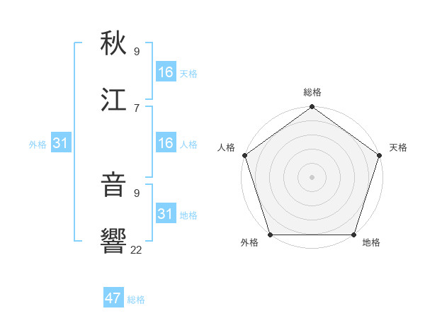 秋江 音響さんの天格は16画の5点!