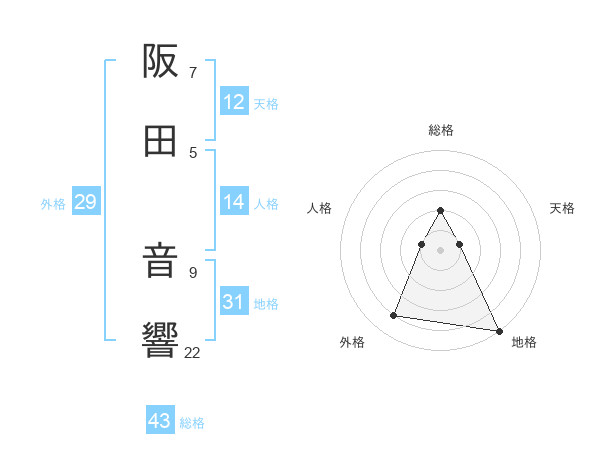 阪田 音響さんの総格は43画の2点!