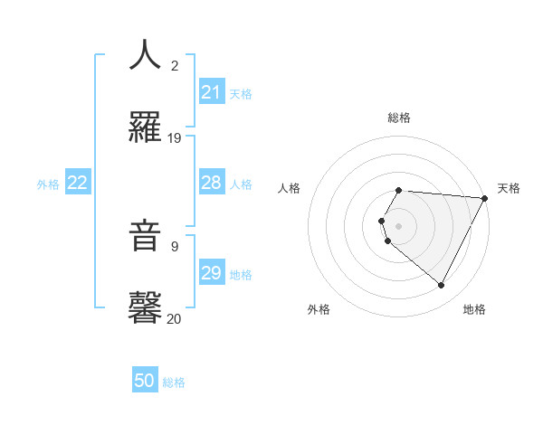 人羅 音馨さんの天格は21画の5点!