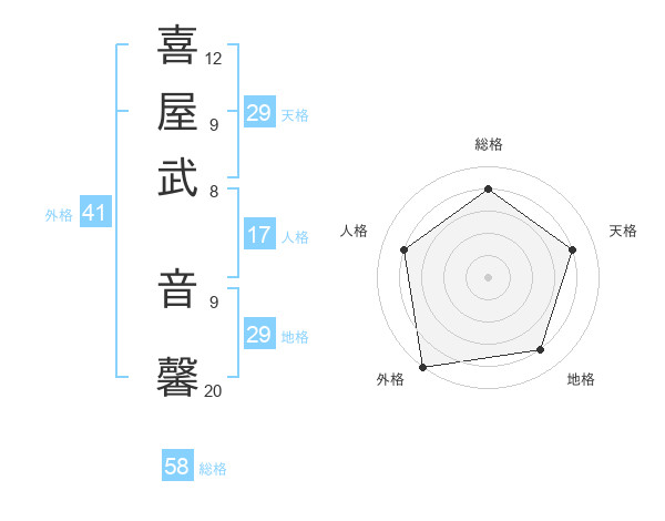 喜屋武 音馨さんの外格は41画の5点!