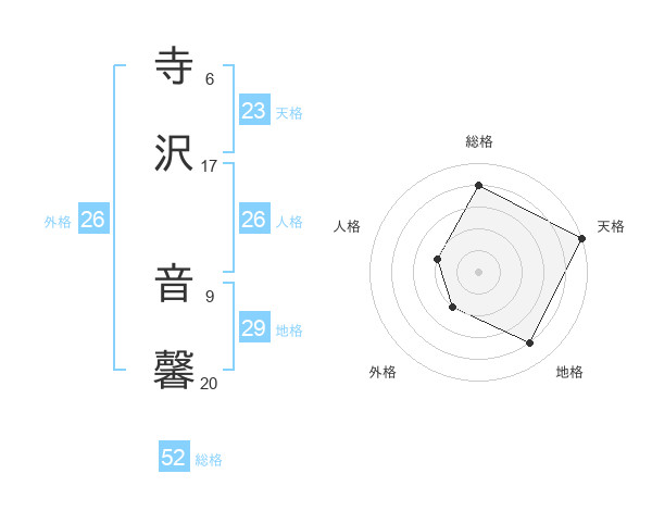 寺沢 音馨さんの外格は26画の2点!