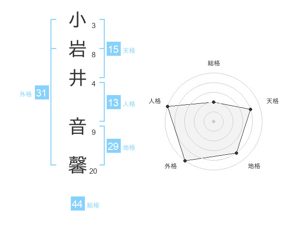 小岩井 音馨さんを姓名の画数から五運を鑑定