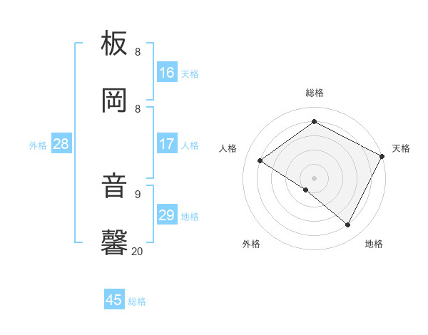 板岡 音馨さんを姓名の画数から五運を鑑定