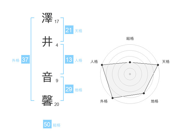 澤井 音馨さんを姓名の画数から五運を鑑定
