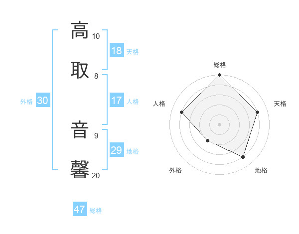 高取 音馨さんの総格は47画の5点!