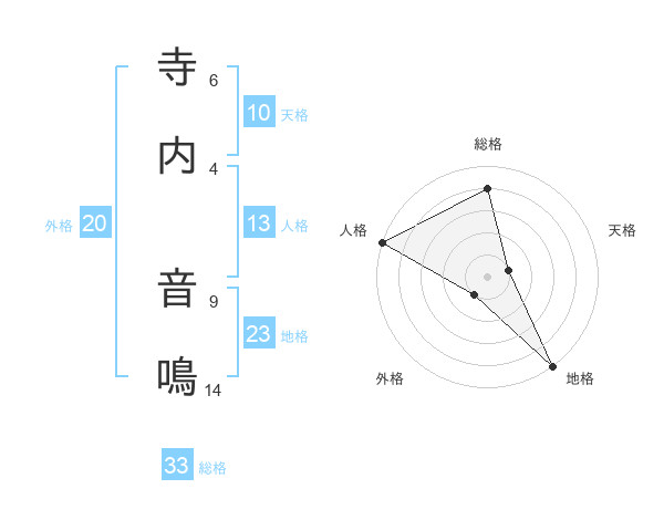 寺内 音鳴さんの総格は33画の4点!