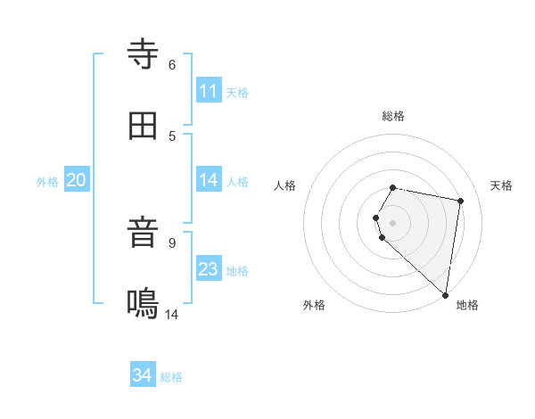 寺田 音鳴さんの天格は11画の4点!