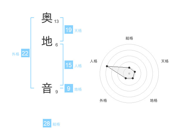 奥地 音さんの外格は22画の1点!