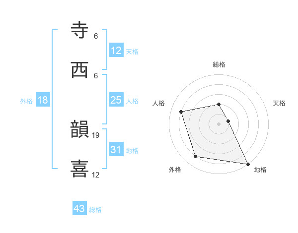 寺西 韻喜さんを姓名の画数から五運を鑑定