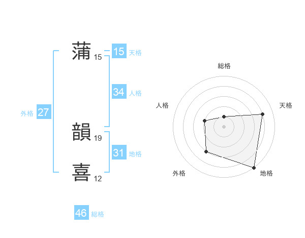 蒲 韻喜さんの天格は15画の4点!
