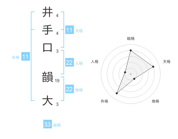 井手口 韻大さんの総格は33画の4点!