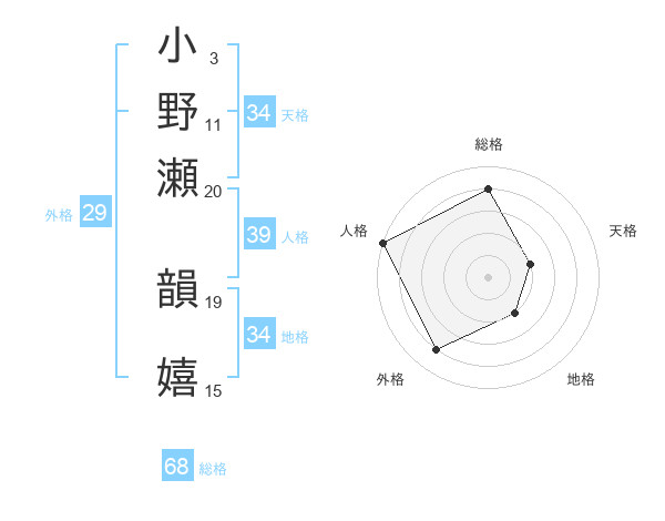 小野瀬 韻嬉さんを姓名の画数から五運を鑑定