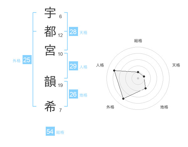宇都宮 韻希さんを姓名の画数から五運を鑑定