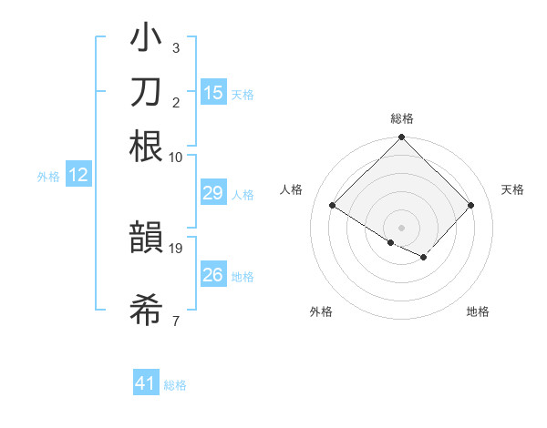 小刀根 韻希さんを姓名の画数から五運を鑑定
