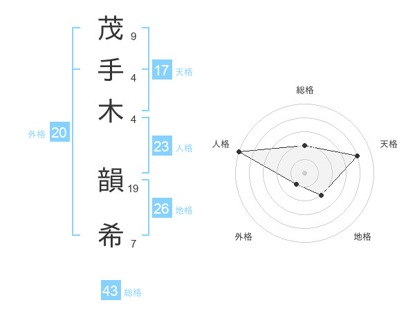 茂手木 韻希さんを姓名の画数から五運を鑑定