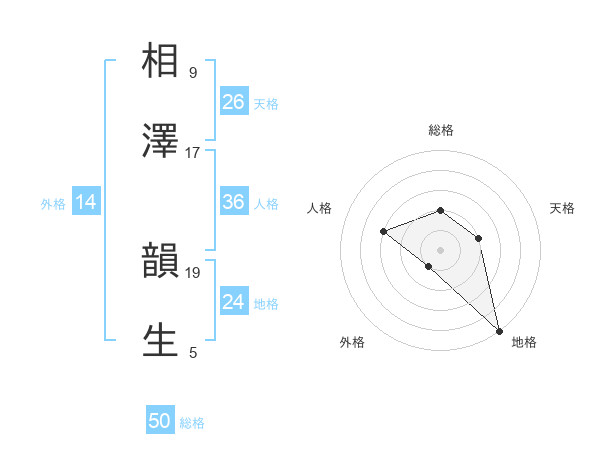 相澤 韻生さんの総格は50画の2点!