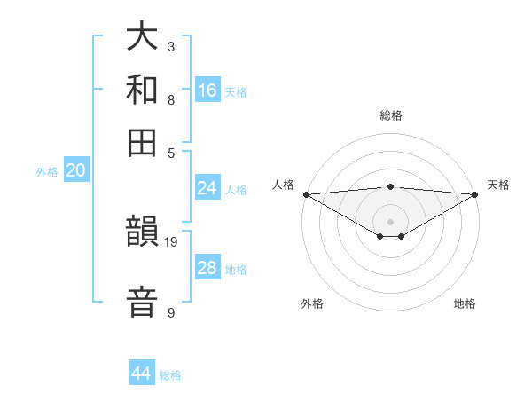大和田 韻音さんを姓名の画数から五運を鑑定