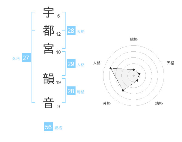 宇都宮 韻音さんを姓名の画数から五運を鑑定