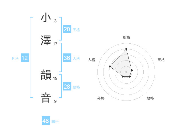小澤 韻音さんの総格は48画の4点!