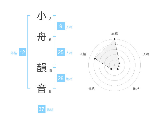 小舟 韻音さんを姓名の画数から五運を鑑定