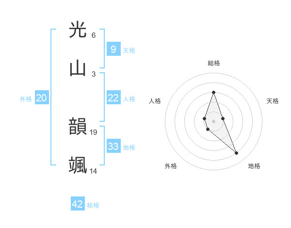 光山 韻颯さんを姓名の画数から五運を鑑定