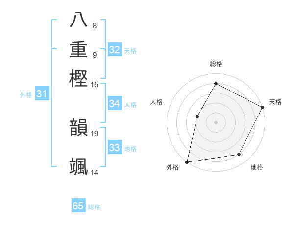 八重樫 韻颯さんを姓名の画数から五運を鑑定