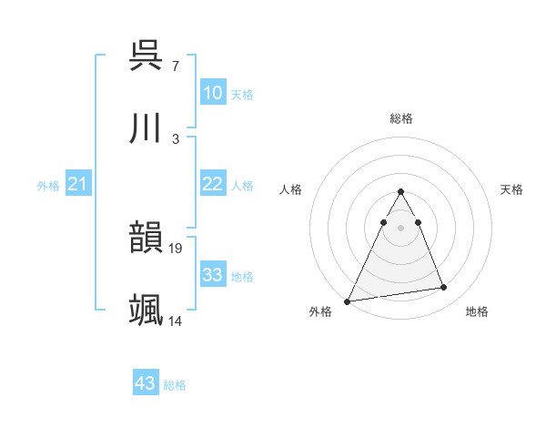 呉川 韻颯さんの総格は43画の2点!