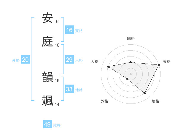 安庭 韻颯さんの天格は16画の5点!
