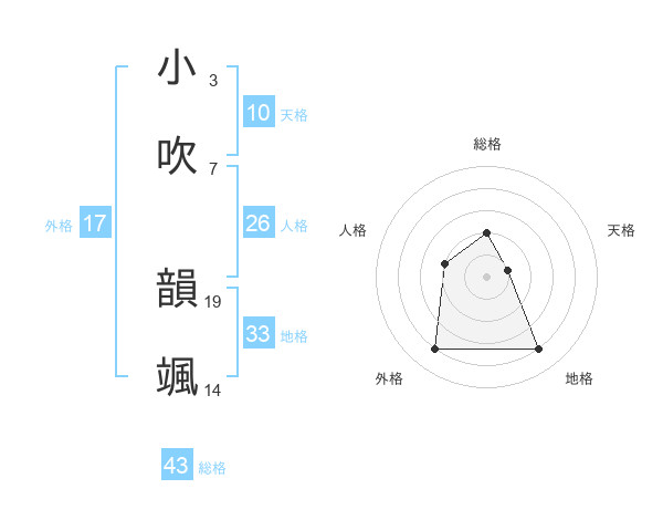 小吹 韻颯さんを姓名の画数から五運を鑑定