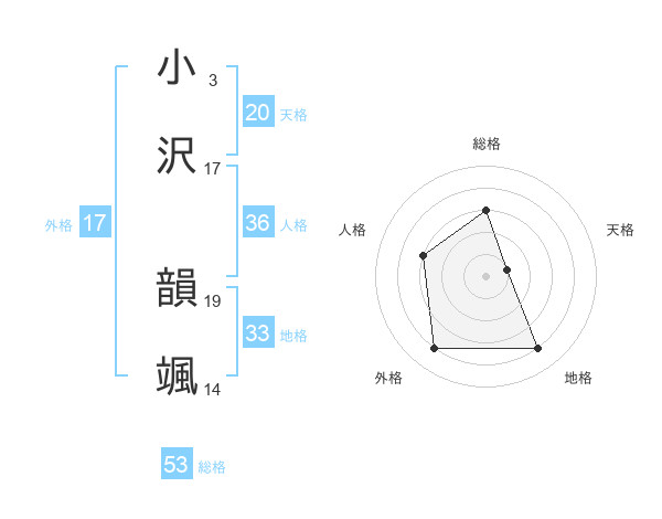 小沢 韻颯さんの総格は53画の3点!