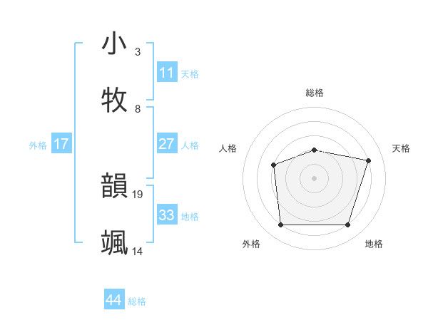 小牧 韻颯さんを姓名の画数から五運を鑑定