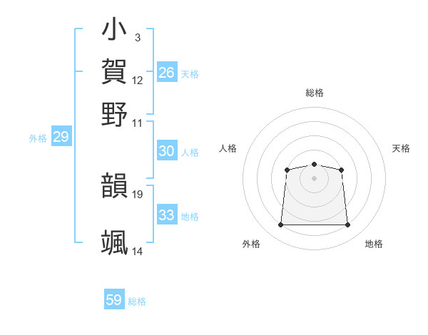 小賀野 韻颯さんの外格は29画の4点!