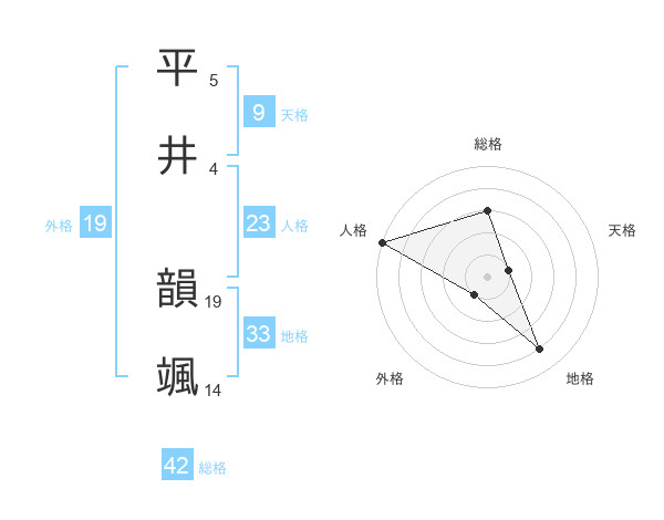 平井 韻颯さんを姓名の画数から五運を鑑定