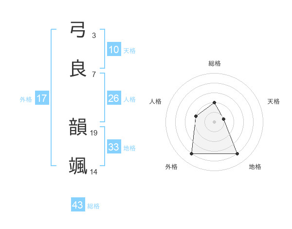 弓良 韻颯さんを姓名の画数から五運を鑑定