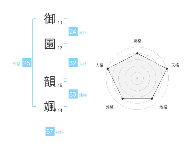 御園 韻颯さんを姓名の画数から五運を鑑定