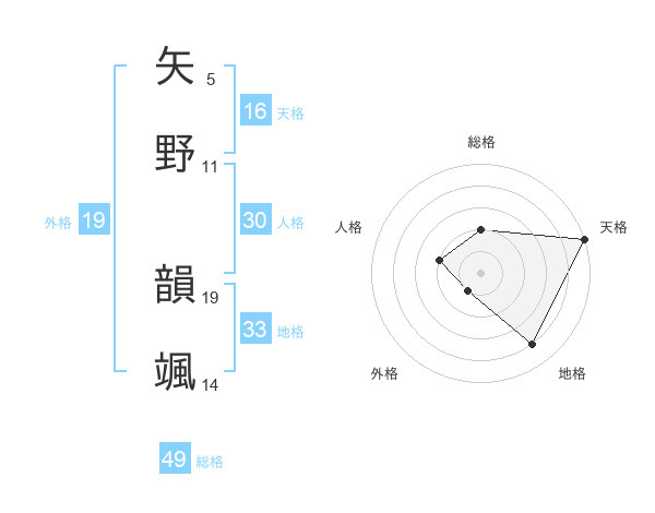 矢野 韻颯さんを姓名の画数から五運を鑑定
