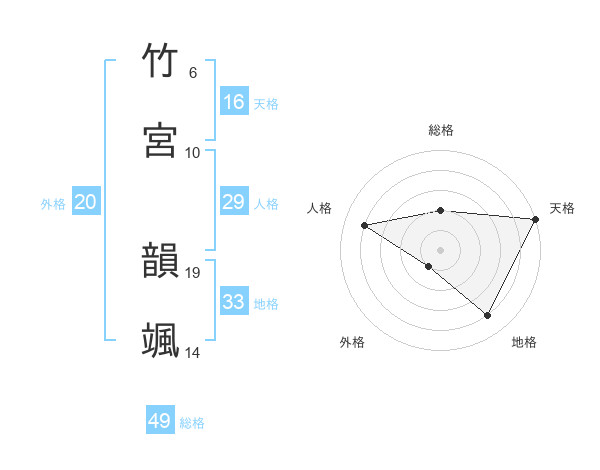 竹宮 韻颯さんの総格は49画の2点!