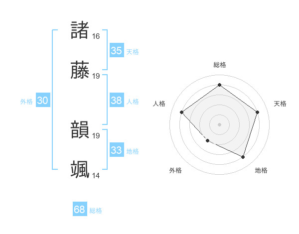 諸藤 韻颯さんの総格は68画の4点!