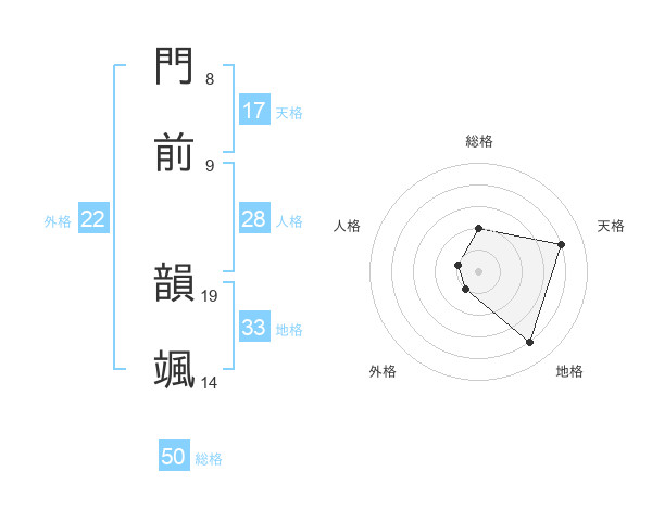 門前 韻颯さんの外格は22画の1点!