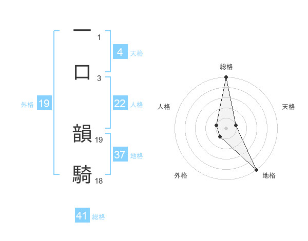 一口 韻騎さんの総格は41画の5点!