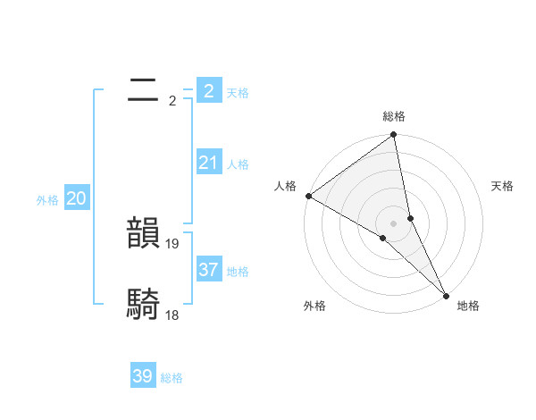 二 韻騎さんの地格は37画の5点!