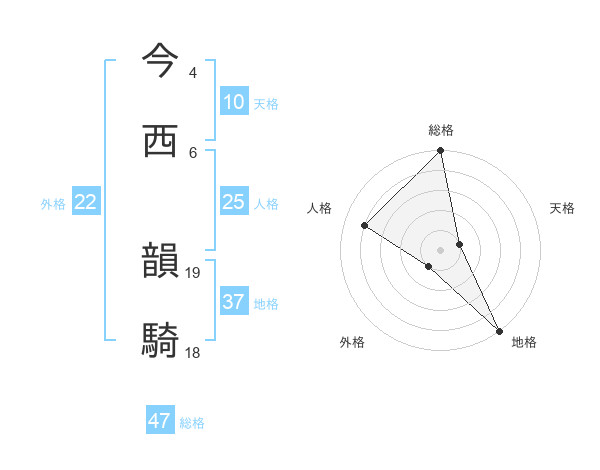 今西 韻騎さんの総格は47画の5点!