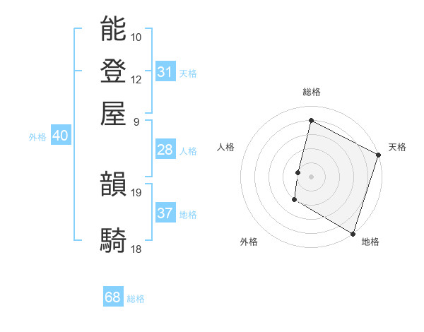 能登屋 韻騎さんの総格は68画の4点!