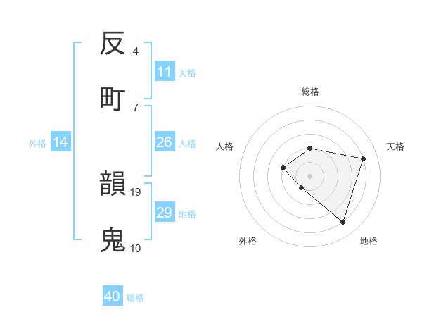 反町 韻鬼さんの総格は40画の2点!