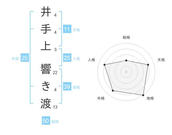 井手上 響き渡さんの総格は50画の2点!