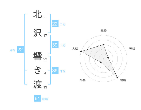 北沢 響き渡さんを姓名の画数から五運を鑑定