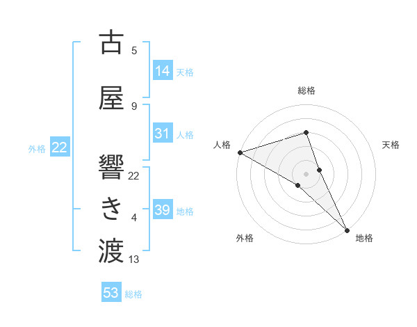 古屋 響き渡さんを姓名の画数から五運を鑑定